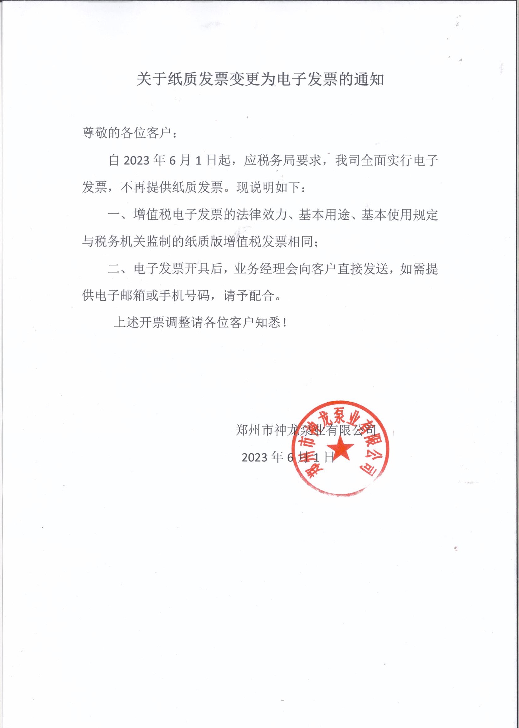 关于纸质发票变更为电子发票的通知